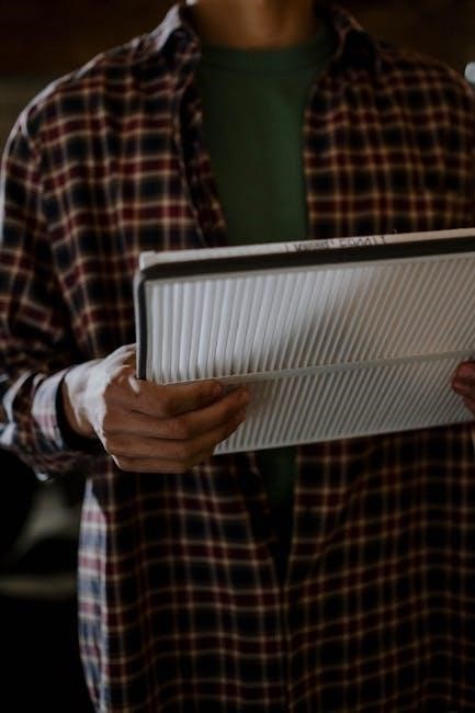 A well-structured maintenance schedule is crucial for the Tennant M30’s performance. Daily checks should include inspecting the battery, water levels, and brush condition. Weekly, ensure hydraulic fluid levels are adequate and filters are clean. Monthly, inspect squeegee blades, tires, and electrical connections. Regular lubrication of moving parts prevents wear. Refer to the manual for specific intervals. Always use genuine Tennant parts for replacements to maintain warranty and performance. Keep a maintenance log to track services and identify potential issues early. Adhering to this schedule ensures efficiency, reduces downtime, and extends the lifespan of your Tennant M30.